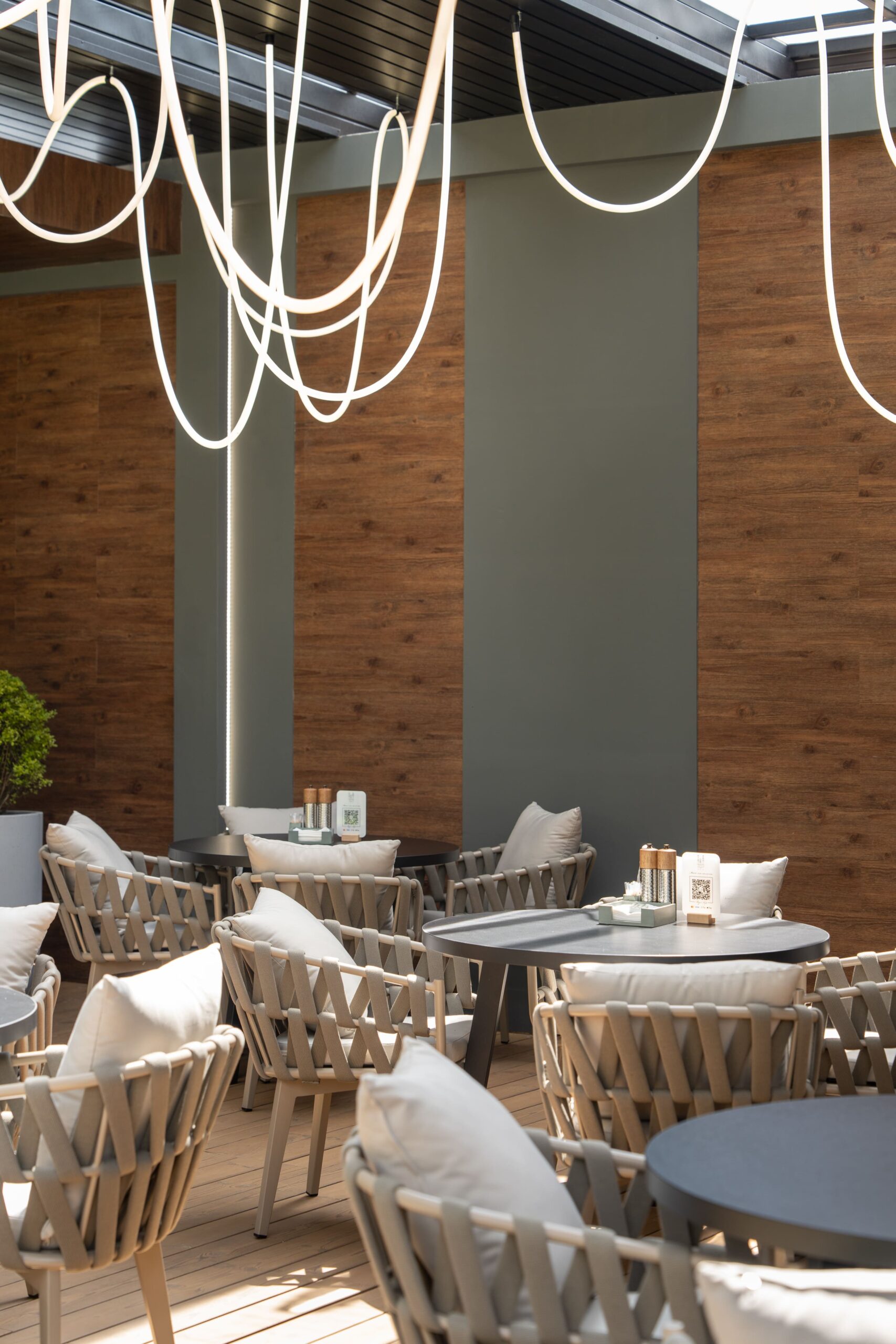 Відкритий зал з навісом, створює атмосферу затишку та спокою. Тут ви зможете насолодитися сніданком під спів птахів або вечерею на заході сонця, милуючись природою навколо.