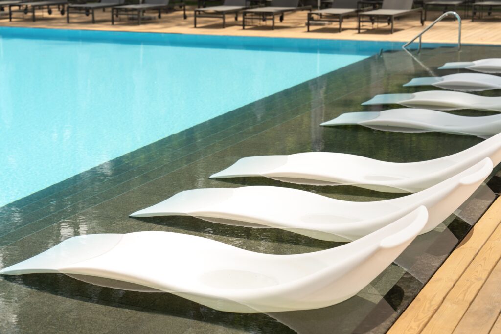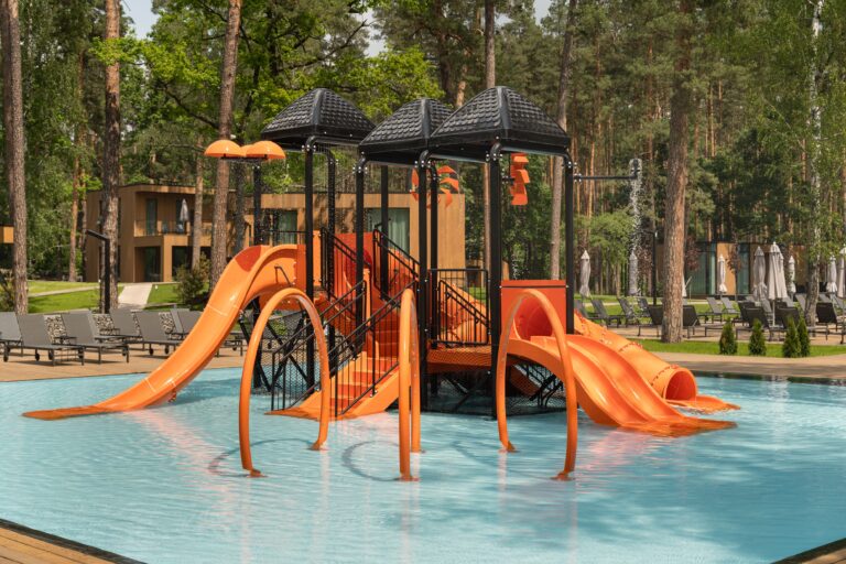 • Окремий дитячий басейн з підігрівом і водяними гірками. Басейни оснащені сучасною системою фільтраціі.